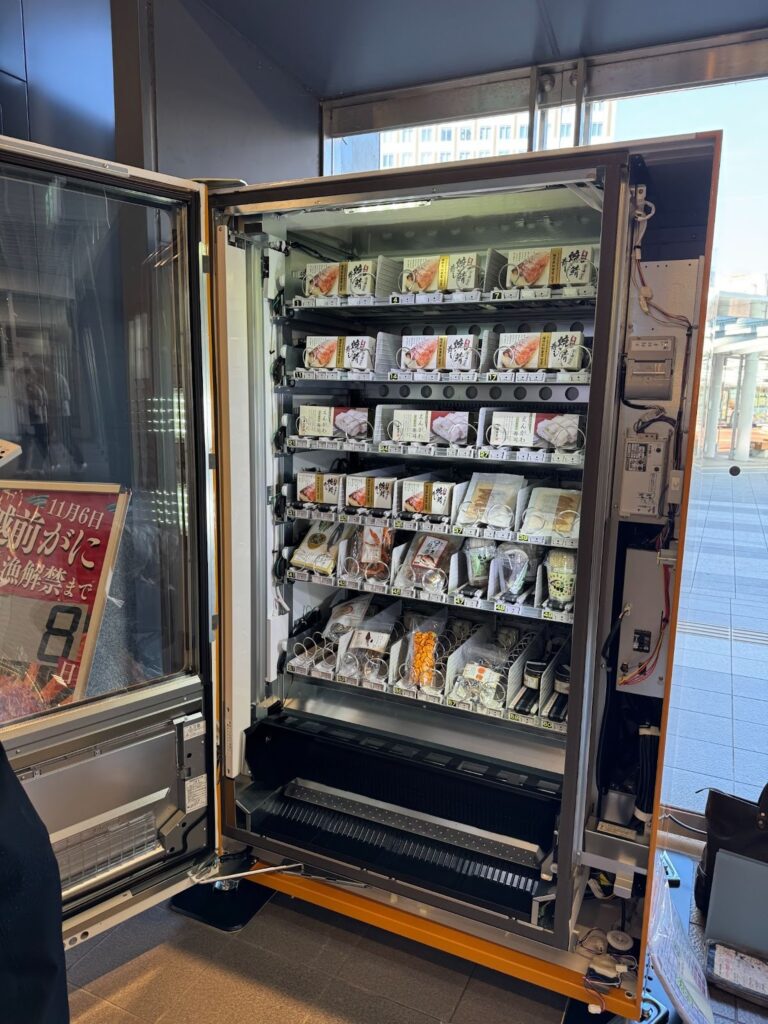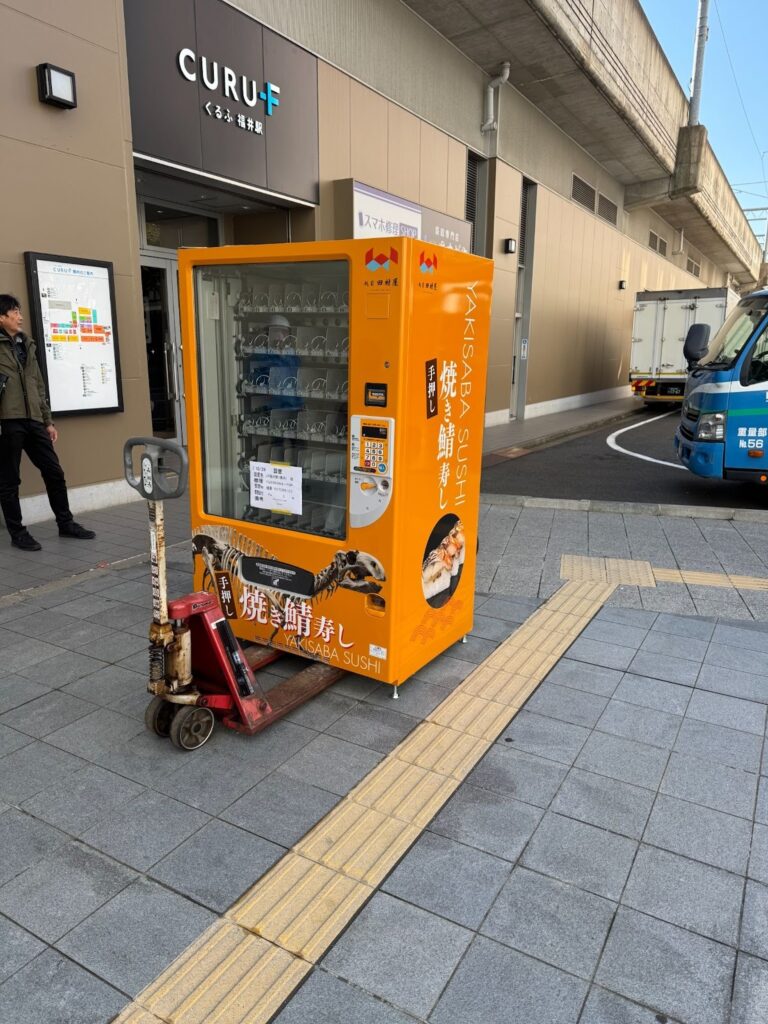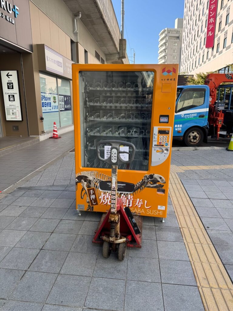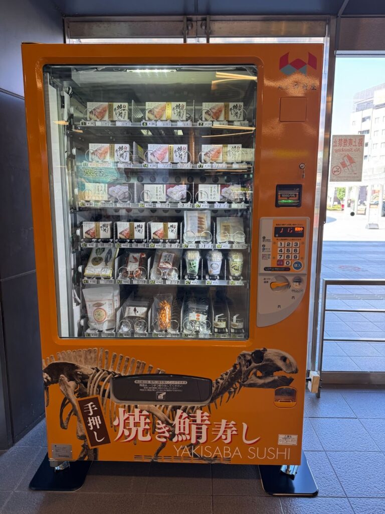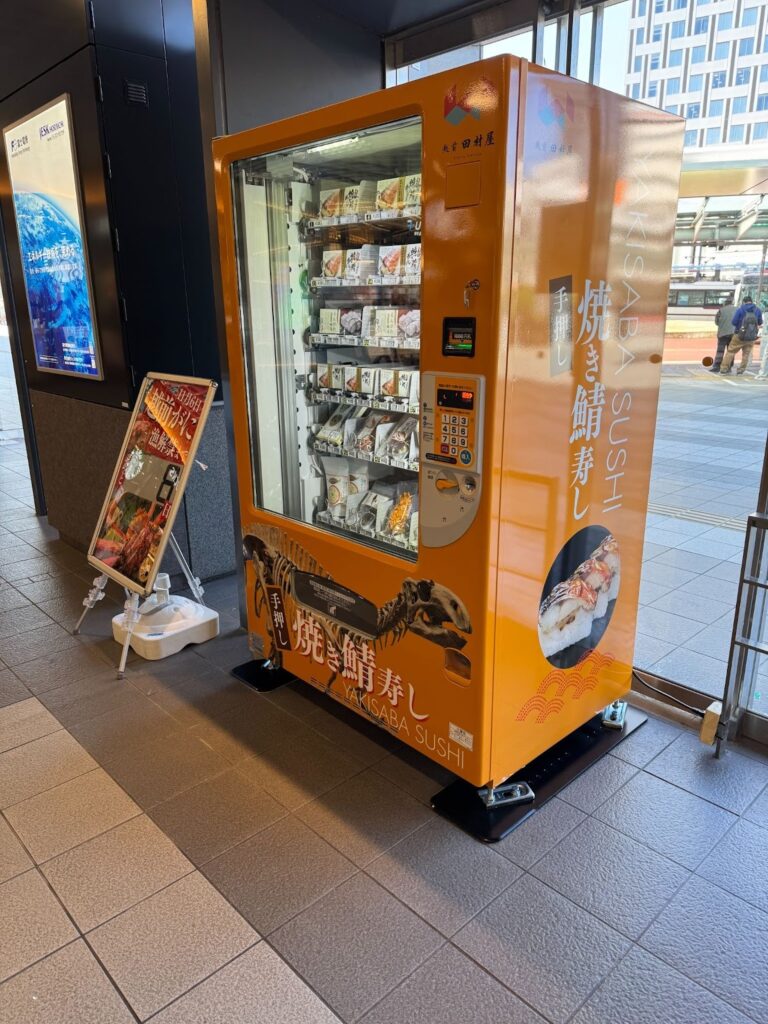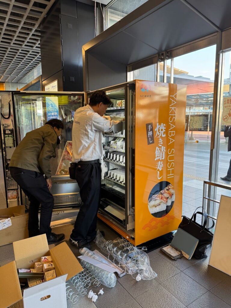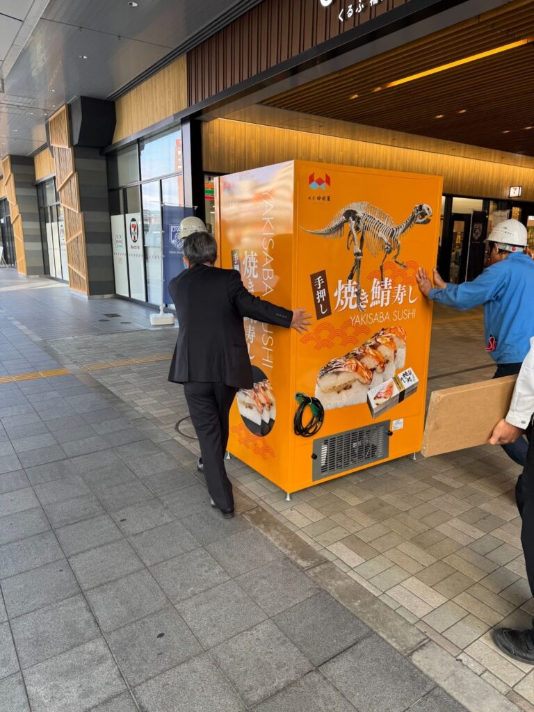 令和7年10月29日(水)に福井駅構内に、福井のご当地駅弁「焼き鯖寿し」が買える自動販売機が登場しました!11月1日(土)からの運用開始です。設置の様子を覗いてみました。